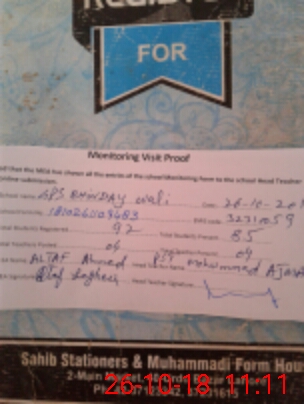 | EMIS Code: 32310059 | Name of School: GPS BHINDAY WALI | |||