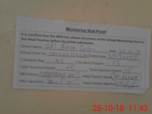 | EMIS Code: 35430295 | Name of School: GPS DERA SOIAN | |||