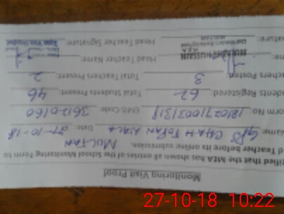 | Attendance Register | Head Teacher | MEA with School | Visit Proof |