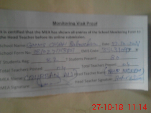 | EMIS Code: 35431097 | Name of School: GPS CHAH BALOCHAN | |||