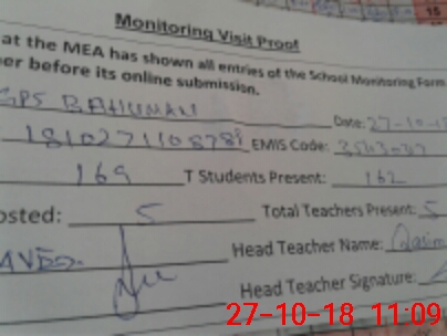 | Attendance Register | Head Teacher | MEA with School | Visit Proof |