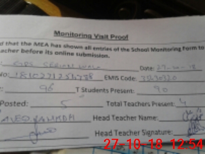 | Attendance Register | Head Teacher | MEA with School | Visit Proof |