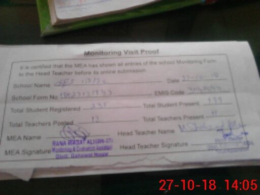 | Certified that this School was Inspected by the Undersigned MEA/DMO Today and the Information Stated Above is as Per Record. | |||||