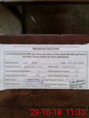 | Attendance Register | Head Teacher | MEA with School | Visit Proof |