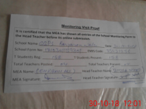 | EMIS Code: 35431256 | Name of School: GGPS BAR YARAN WALA | |||