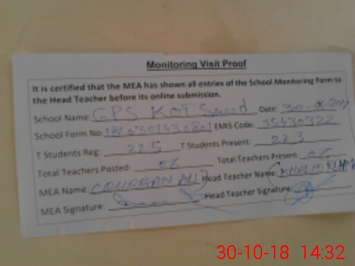 | EMIS Code: 35430322 | Name of School: GPS KOT SAEED | |||