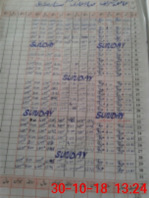 | CNIC | Full Name | Designation | R/C | Absence During Last Calender Month |