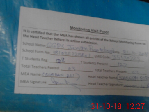 | Certified that this School was Inspected by the Undersigned MEA/DMO Today and the Information Stated Above is as Per Record. | |||||