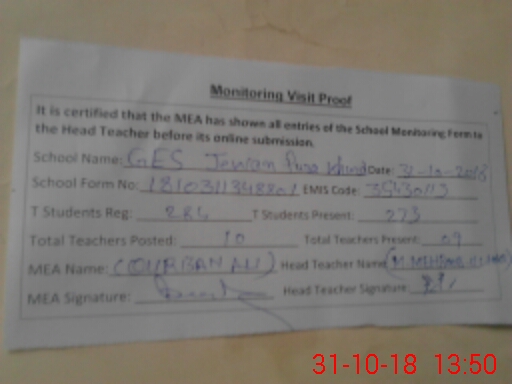 | EMIS Code: 35430113 | Name of School: GES JEVAN PURA KHURD | |||