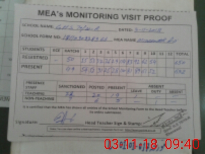 | Attendance Register | Head Teacher | MEA with School | Visit Proof |