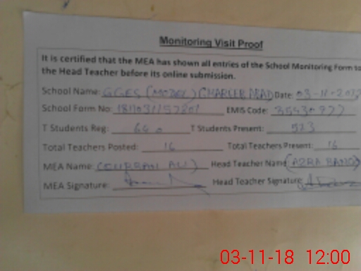| Certified that this School was Inspected by the Undersigned MEA/DMO Today and the Information Stated Above is as Per Record. | |||||