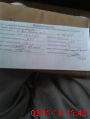 | Attendance Register | Head Teacher | MEA with School | Visit Proof |