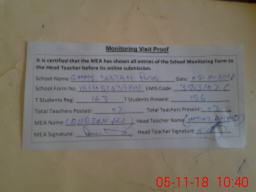 | EMIS Code: 35431076 | Name of School: GMMS SULTAN PURA | |||