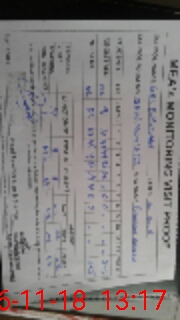 | Monitoring Date: 06-11-2018 | Start Time: 06-11-2018 12:16 PM | End Time: 06-11-2018 01:22 PM | Name of MEA: Sh**** Na**** | |