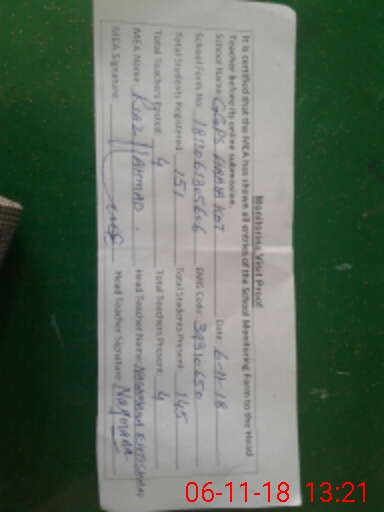 | Attendance Register | Head Teacher | MEA with School | Visit Proof |