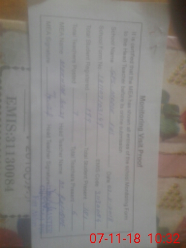 | Attendance Register | Head Teacher | MEA with School | Visit Proof |
