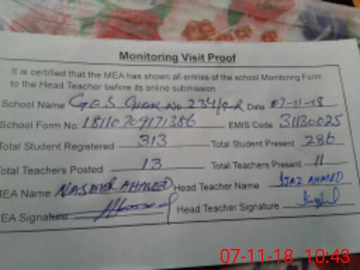| EMIS Code: 31130025 | Name of School: GES CHAK 234/9-R | |||