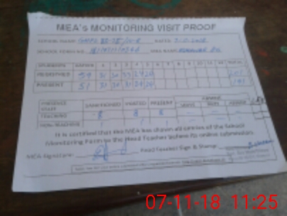 | Attendance Register | Head Teacher | MEA with School | Visit Proof |