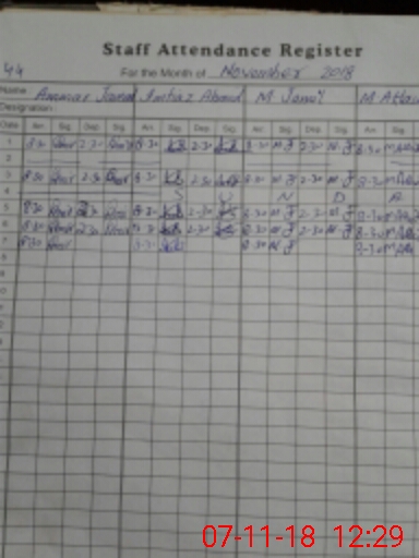 | CNIC | Full Name | Designation | R/C | Absence During Last Calender Month |