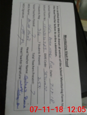 | Attendance Register | Head Teacher | MEA with School | Visit Proof |