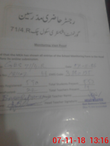 | EMIS Code: 31140135 | Name of School: GHS CHAK NO 71/4-R | |||