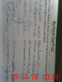 | Monitoring Date: 07-11-2018 | Start Time: 07-11-2018 09:54 AM | End Time: 07-11-2018 11:08 AM | Name of MEA: Za**** Ah**** | |