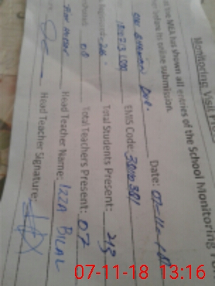 | Certified that this School was Inspected by the Undersigned MEA/DMO Today and the Information Stated Above is as Per Record. | |||||