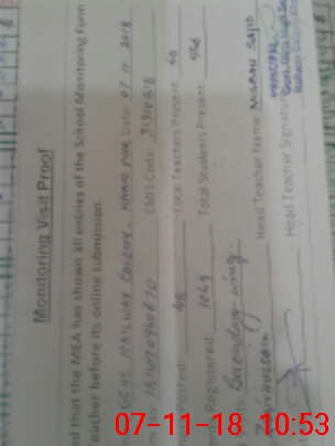 | Certified that this School was Inspected by the Undersigned MEA/DMO Today and the Information Stated Above is as Per Record. | |||||