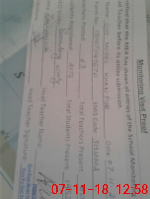 | Attendance Register | Head Teacher | MEA with School | Visit Proof |