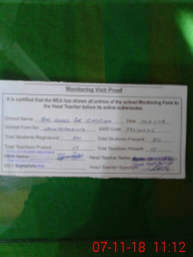 | Certified that this School was Inspected by the Undersigned MEA/DMO Today and the Information Stated Above is as Per Record. | |||||