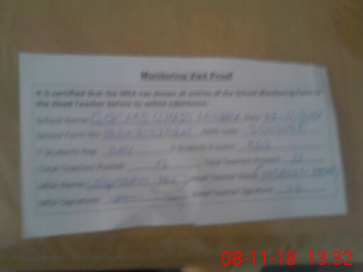 | Attendance Register | Head Teacher | MEA with School | Visit Proof |