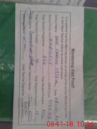 | Attendance Register | Head Teacher | MEA with School | Visit Proof |
