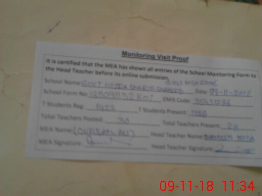 | Certified that this School was Inspected by the Undersigned MEA/DMO Today and the Information Stated Above is as Per Record. | |||||
