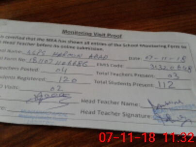 | Attendance Register | Head Teacher | MEA with School | Visit Proof |