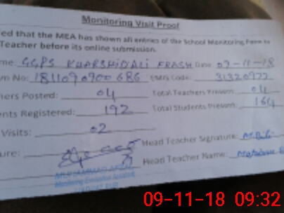| Attendance Register | Head Teacher | MEA with School | Visit Proof |