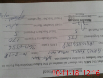 | Certified that this School was Inspected by the Undersigned MEA/DMO Today and the Information Stated Above is as Per Record. | |||||