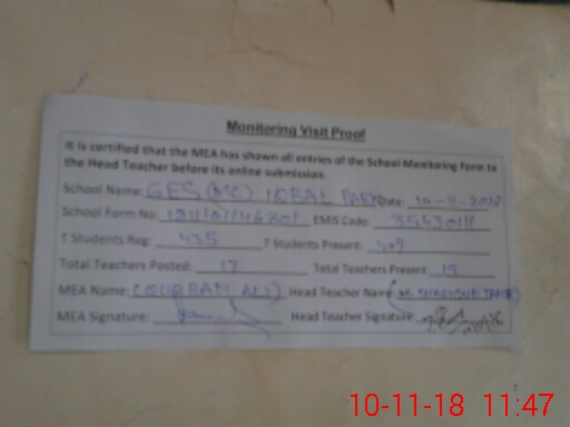 | EMIS Code: 35430111 | Name of School: GES MC ALLAMA IQBAL PARK | |||