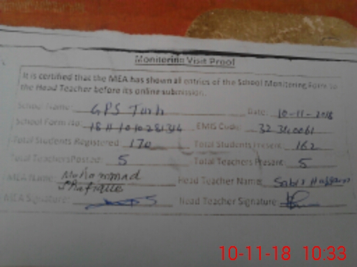 | Certified that this School was Inspected by the Undersigned MEA/DMO Today and the Information Stated Above is as Per Record. | |||||