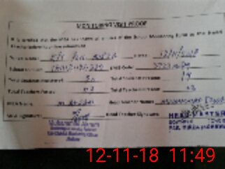 | Monitoring Date: 12-11-2018 | Start Time: 12-11-2018 11:24 AM | End Time: 12-11-2018 11:53 AM | Name of MEA: ZM**** Ak**** | |