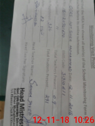 | EMIS Code: 31310611 | Name of School: GGES KOT SHER MOHAMMAD | |||
