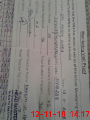 | Attendance Register | Head Teacher | MEA with School | Visit Proof |