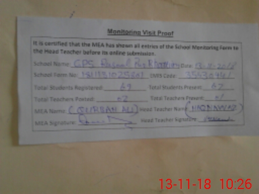 | Certified that this School was Inspected by the Undersigned MEA/DMO Today and the Information Stated Above is as Per Record. | |||||