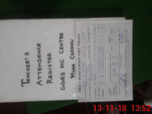 | Remarks (Use Separate Page if Required): NUSRAT PARVEEN AT AND MAZHAR ALI CIV FOUND ABSENT FROM DUTY THERE ARE NO LEAVE APPLICATIONS LEAVE ACCOUNTS AND DIARY REGISTER ENTRIES LAST DIARY SNO 250 DATED 06 NOVEMBER 2018 BOGUS ATTENDANCE OF BOTH ABOVEMENTIONED STAFF ON ATTENDANCE REGISTER STAFF PHYSICALLY NOT PRESENT IN THE SCHOOL ON PHYSICALLY CHECKING VISIT WAS START AT 1113 AM BUT APPLICATION RESTART AT 0136 PM AND ENTER THE DATA DUE TO NOT TAKE THE PICTURES | |||||