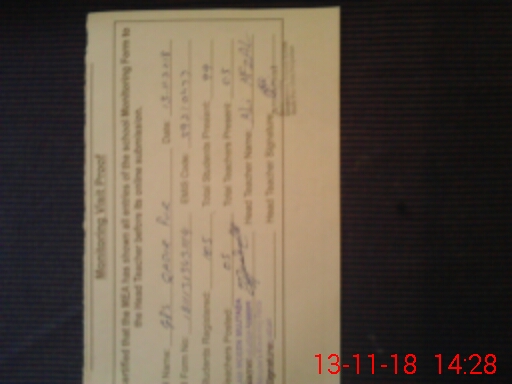 | Attendance Register | Head Teacher | MEA with School | Visit Proof |