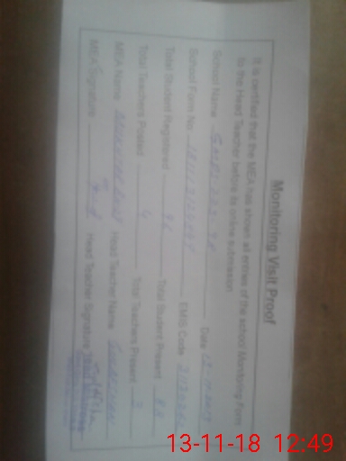 | Certified that this School was Inspected by the Undersigned MEA/DMO Today and the Information Stated Above is as Per Record. | |||||