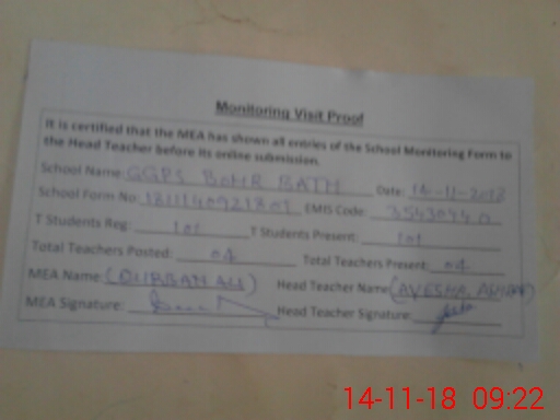 | EMIS Code: 35430440 | Name of School: GGPS BOHAR BATH | |||