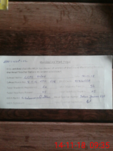 | Attendance Register | Head Teacher | MEA with School | Visit Proof |
