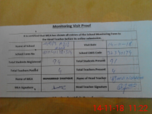 | Attendance Register | Head Teacher | MEA with School | Visit Proof |