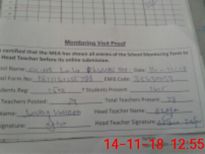 | Attendance Register | Head Teacher | MEA with School | Visit Proof |