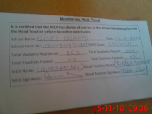 | Certified that this School was Inspected by the Undersigned MEA/DMO Today and the Information Stated Above is as Per Record. | |||||